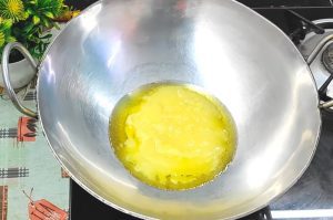 1. आटा भूनें: एक लोहे की कढ़ाई में घी गरम करें और आटा डालकर सुनहरा होने तक भूनें।