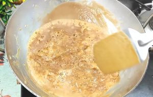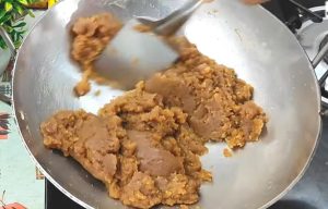 आटे को तब तक भूनें जब तक कि उसमें से अच्छी खुशबू आने लगे।